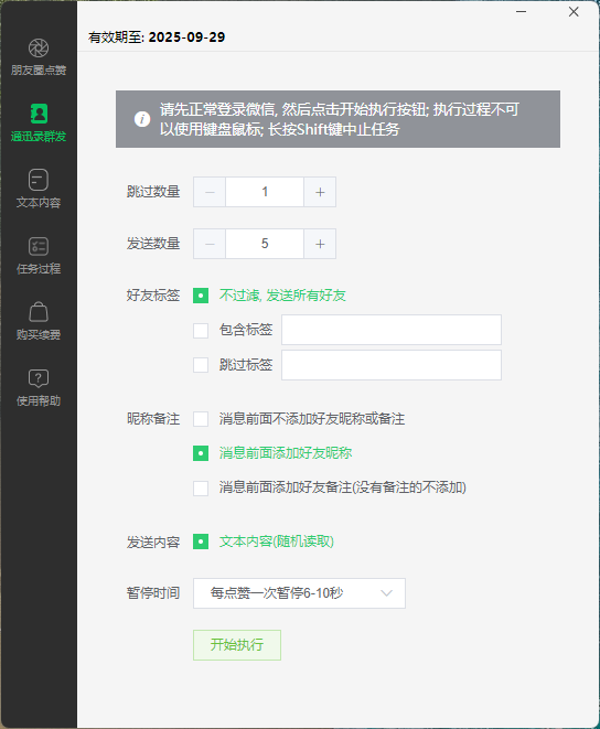 5、购买软件以后,第二步设置通讯录群发基础信息。